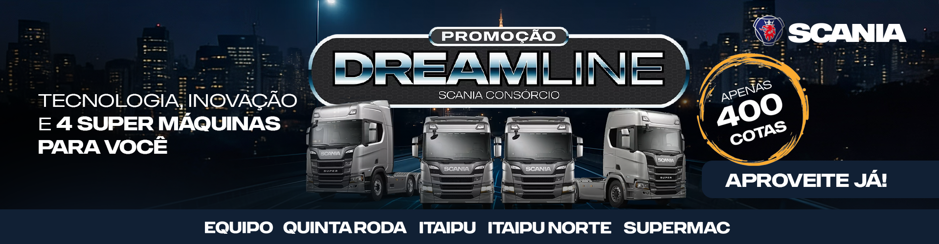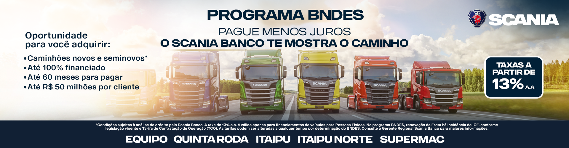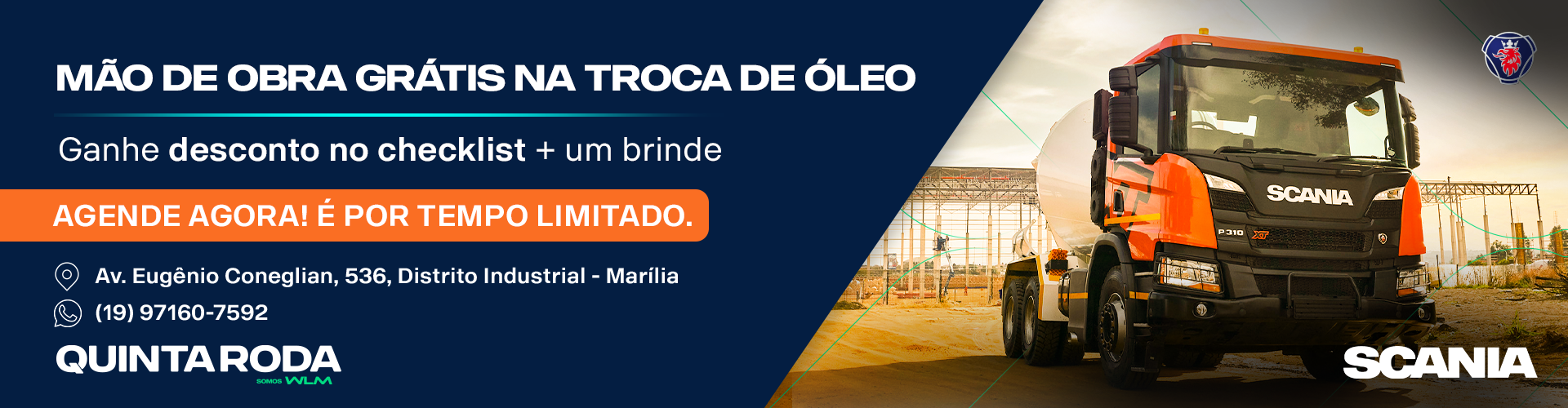A Quinta Roda é, hoje, uma das principais concessionárias da Scania no país. A história da Companhia começou em 02 de Maio do ano de 1973, na Avenida Barão de Itapura, cidade de Campinas-SP, a partir da expansão da Supergasbras S. A. Distribuidora de Gás. E para satisfação de cada cliente, a Quinta Roda desenvolveu uma ampla e moderna estrutura de atendimento ao cliente. Atuando com destaque na comercialização de peças genuínas Scania e remanufaturadas, com garantia de fábrica. A Quinta Roda faz parte do Grupo WLM que conta com mais 17 unidades em 5 estados diferentes, sendo Itaipu – Minas Gerais, Equipo – Rio de Janeiro, Itaipu Norte – Pará e Amapá e Supermac Manaus e Roraima. Conte com todas elas para seguir viagem com segurança e total produtividade.